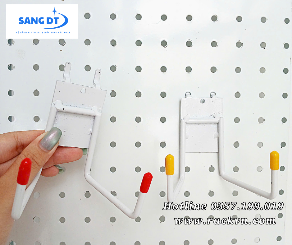 - Tương thích linh hoạt: Dễ dàng cài đặt trên các loại kệ tôn lỗ, tạo sự chắc chắn và ổn định khi treo vợt.